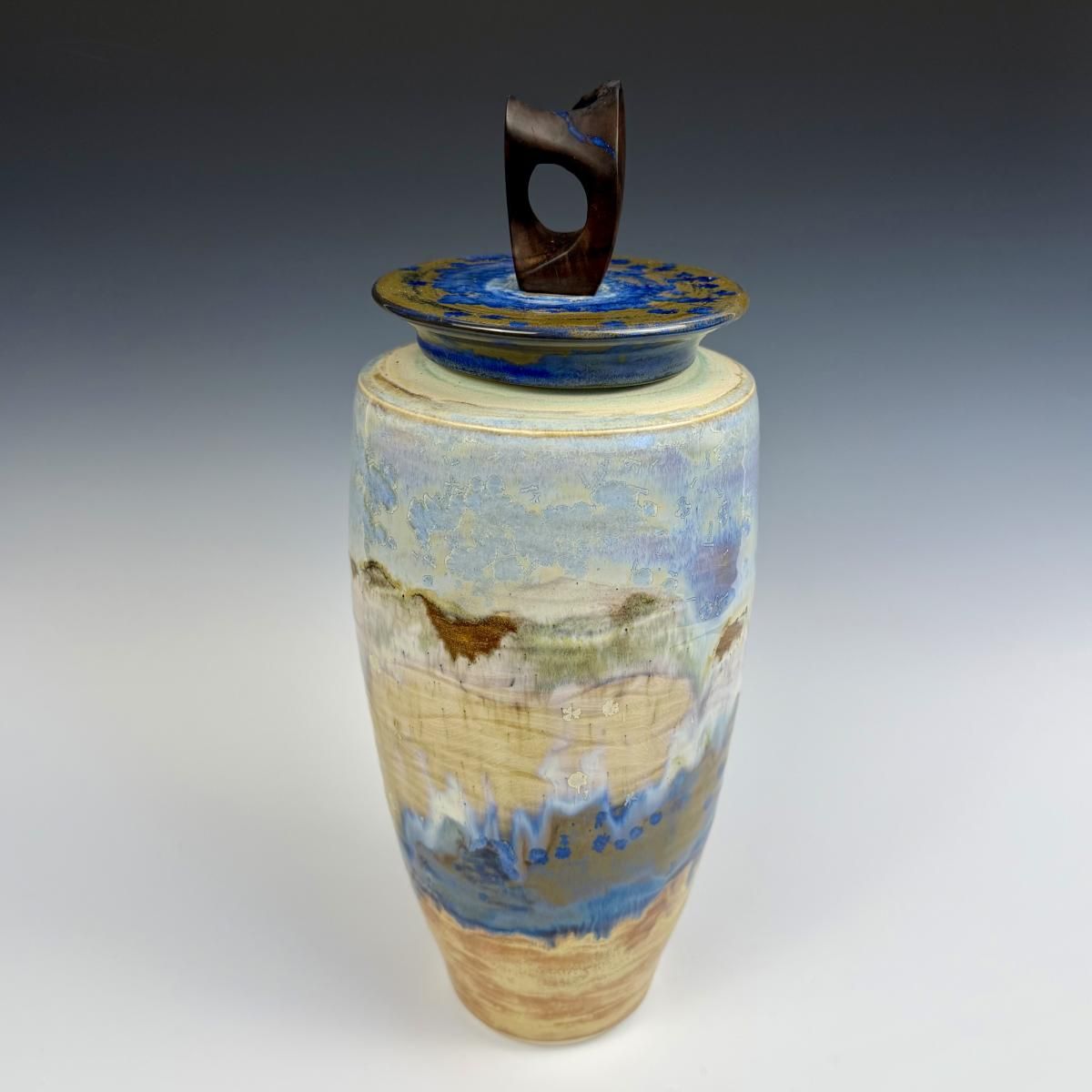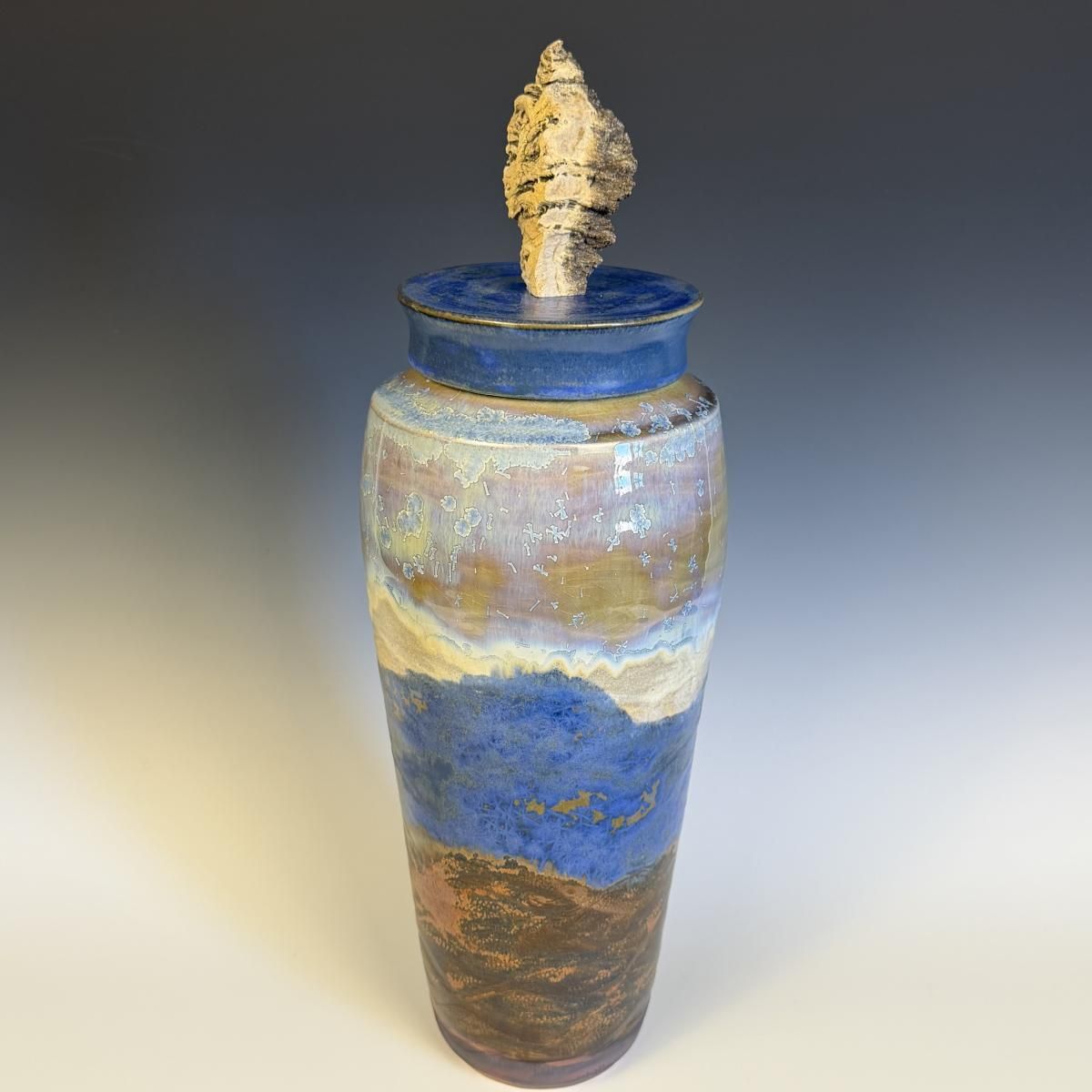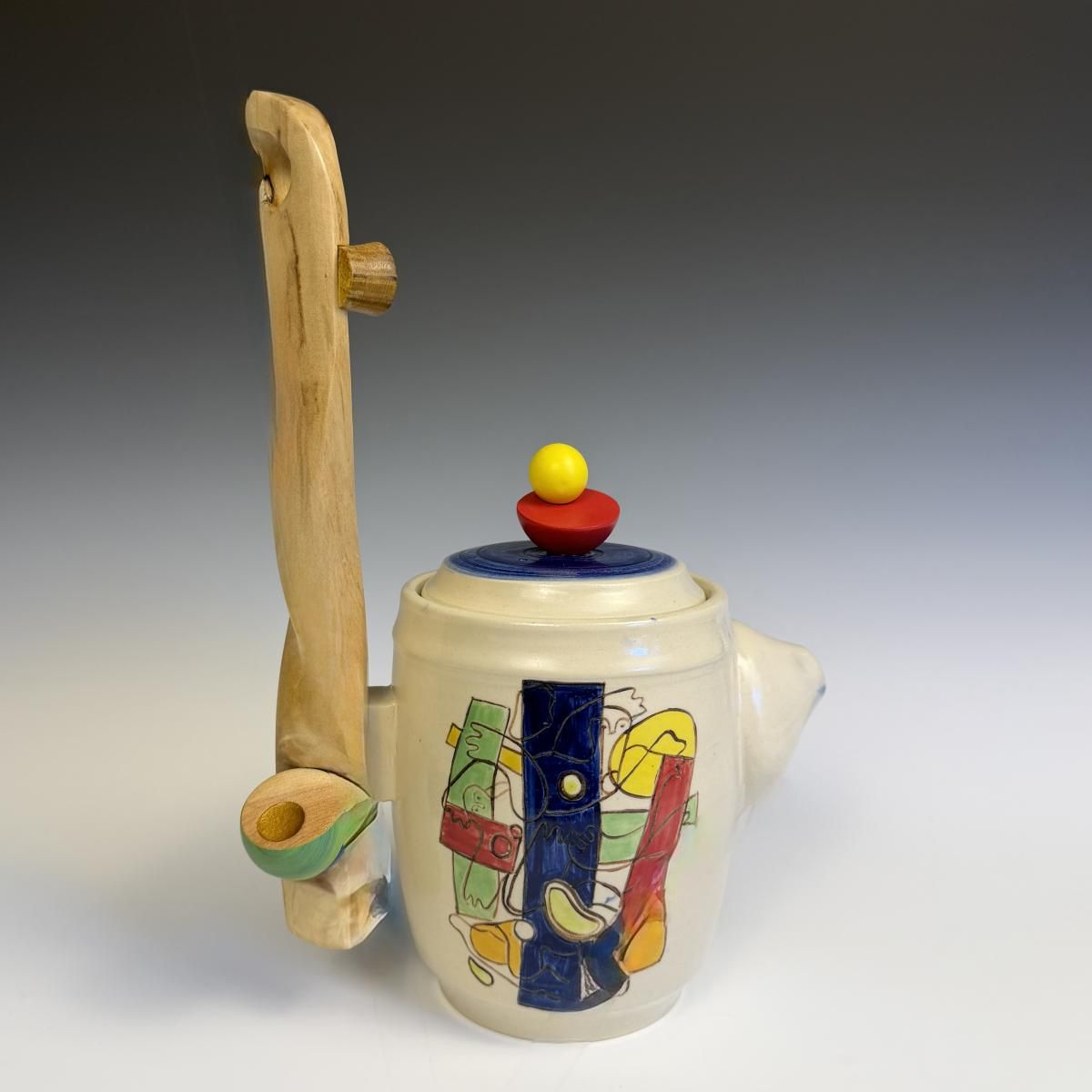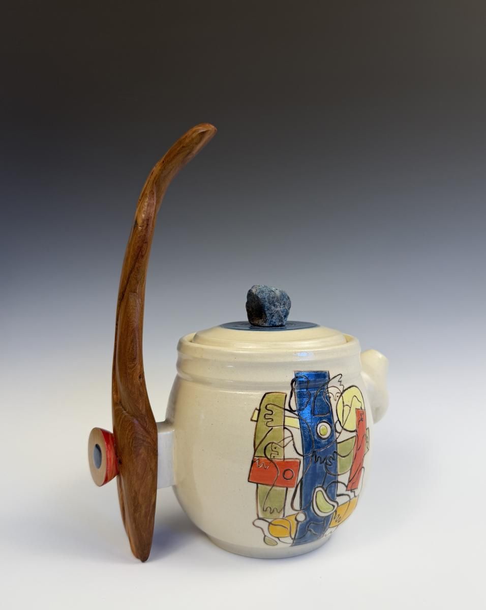 Christiane began working with her hands as a physical therapist in Belgian, Switzerland and France. She has now turned those healing hands to form exquisite pottery and porcelain pieces. Combining the delicately formed clay with found and naturally weathered wood from New Mexico, creating unique and functional pieces